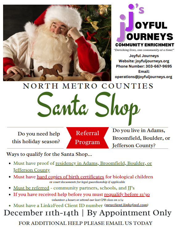 - Clients Must live in Adams or Broomfield County (Must Show Proof)
